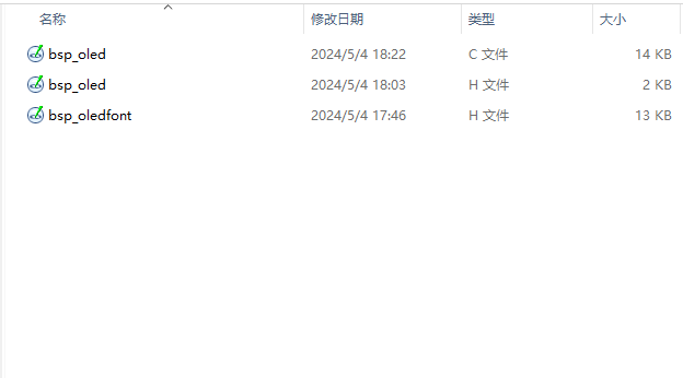 OLED模块驱动代码主要有三个文件,分别是bsp_oled.c、bsp_oled.h、bsp_oledfond.h